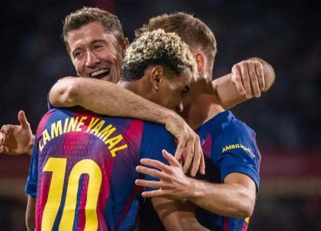 上半场结束前,巴萨发出角球,拉什福德助攻孔德头球攻门。巴萨1-1,双方重回同一起跑线。下半场,巴萨再接再厉。第59分钟,亚马尔右路突破后传中,莱万在中路头球攻门,球打在立柱上入网,2-1!