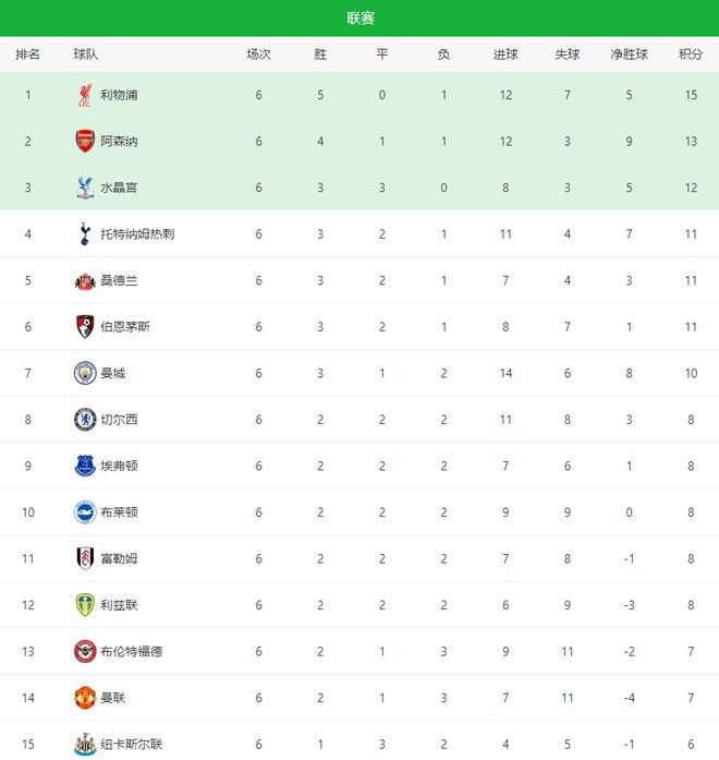 六轮过后,英超格局逐渐清晰:利物浦、阿森纳和水晶宫三强并驾齐驱,仅差3分,除了大黑马外,其他两队均展现出明显的冠军气质。积10分排名第十的曼城,开始强势复苏;而红魔曼联依旧“坚持”,保持着上赛季的止颓积7分,排在英超积分榜第14位,少帅阿莫林的下课铃声响个不停。