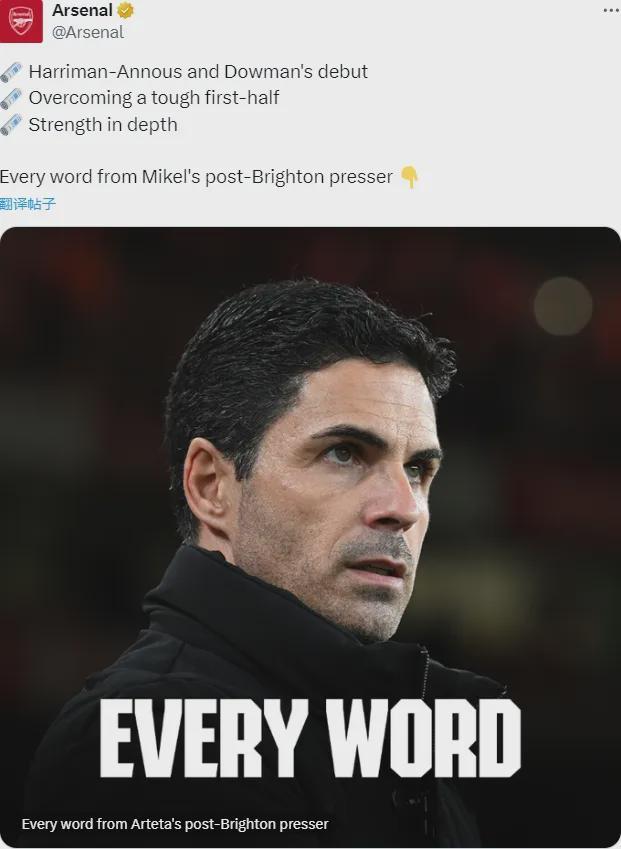 阿尔特塔出席了赛后新闻发布会,我们来看看阿森纳主帅谈到的主要内容。