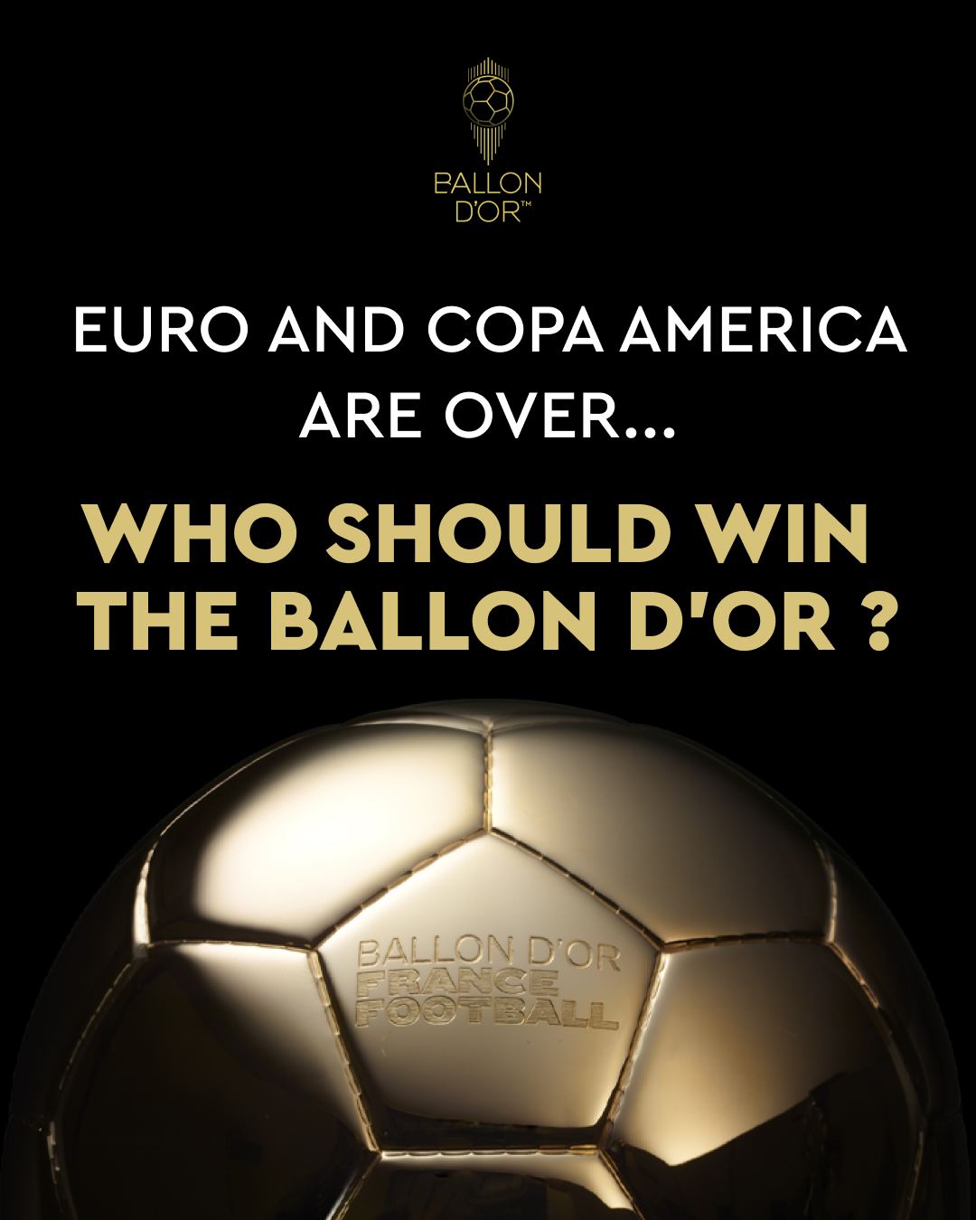 7月16日报道 欧洲杯和美洲杯都已结束,金球奖官方社媒发起提问:距金球颁奖还有107天,谁应该获得金球奖?