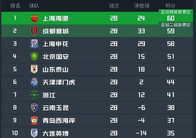 目光转向亚冠!海港+成都全力亚冠出线,申花留力联赛争冠